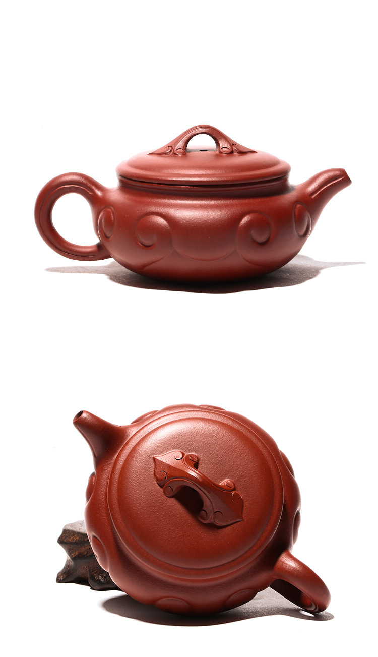 Introduction: The Ruyi - inspired Antique - style teapot is a classic model. Its elegant shape and moderate capacity highlight the grandeur of the traditional design. It is made of carefully selected original - Imperial Purple Clay, presenting a delicate and elegant color that, when combined with the old - fashioned teapot shape, gives a unique charm. In this work, the lines of the handle and spout are smooth, and they are subtly connected to the teapot body. The lid is set off by an arch - bridge - like design and is shaped like a ruyi, echoing the theme. Additionally, the teapot body features special ruyi patterns, creating a distinctive style. It is quite reasonable that this teapot has been passed down from the Ming Dynasty to the present.