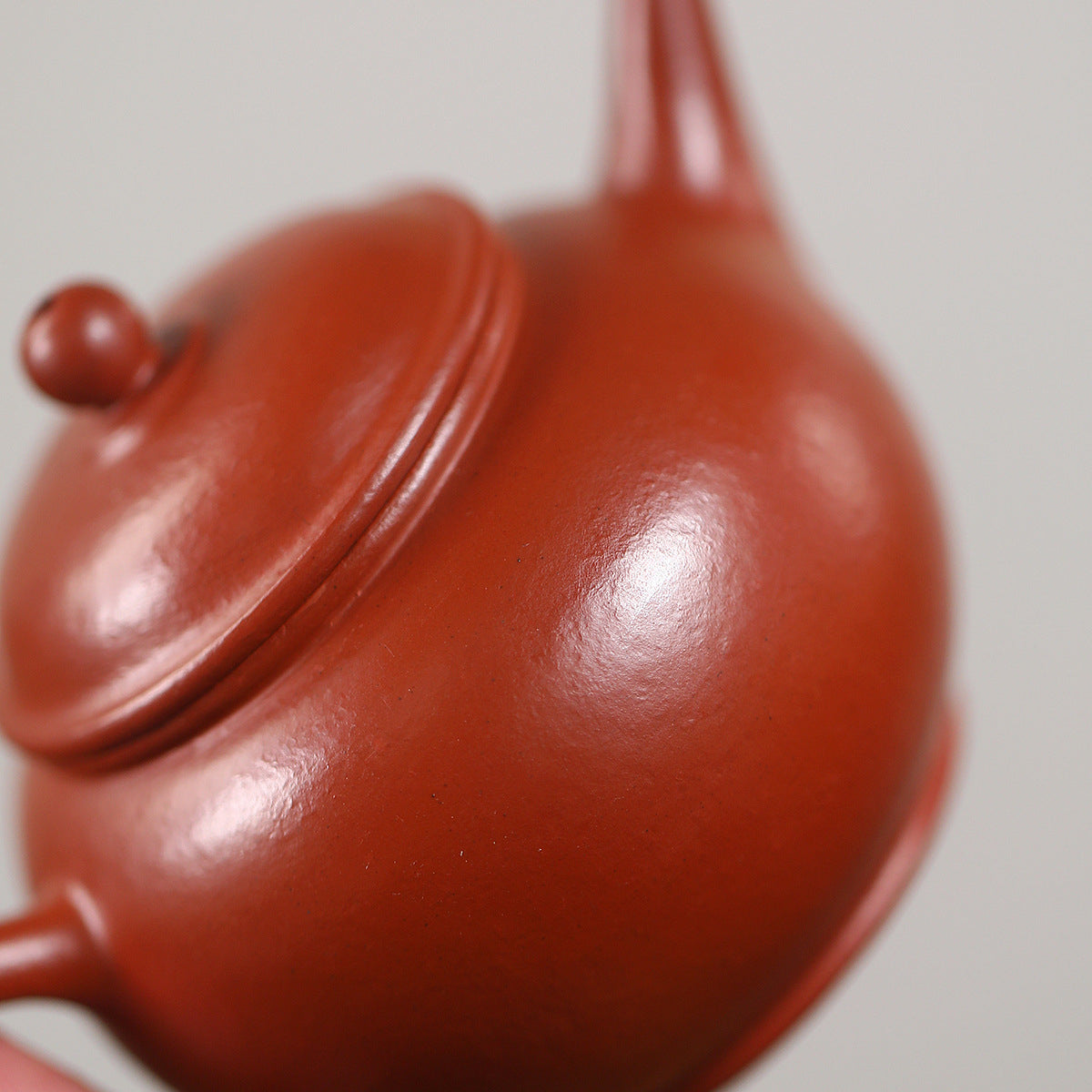 Introduction: This teapot features a dignified and stable shape, with a harmonious proportion and a precise structure. Its simple and unadorned design allows people to indulge in its elegant charm and savor it slowly. Slightly different from common ones, this Dezhong - style teapot has a relatively short body but a rather tall lid, adding an extra touch of slender, ancient beauty. The concealed spout is unique and interesting, with a powerful and swift water flow. The handle is in an ear - like shape, providing a firm grip. The traditional pressed lid fits perfectly, ensuring good airtightness. The flat - column - shaped lid knob matches the shape of the teapot body. At first glance, its shape may seem ordinary, but upon closer inspection, it reveals a depth that offers much food for thought, making it a great choice for self - cultivation. This work is simple, thick, and exudes a strong sense of age. Its craftsmanship and profound connotation have won over countless teapot enthusiasts.
